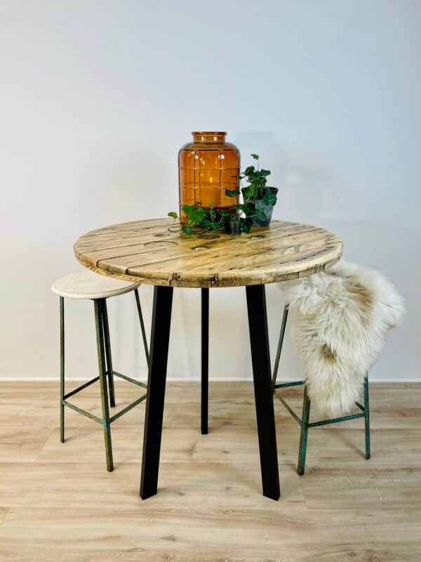 Barbord af Kabeltromle på Sort Stålstel | Ø95-100 / Lakeret