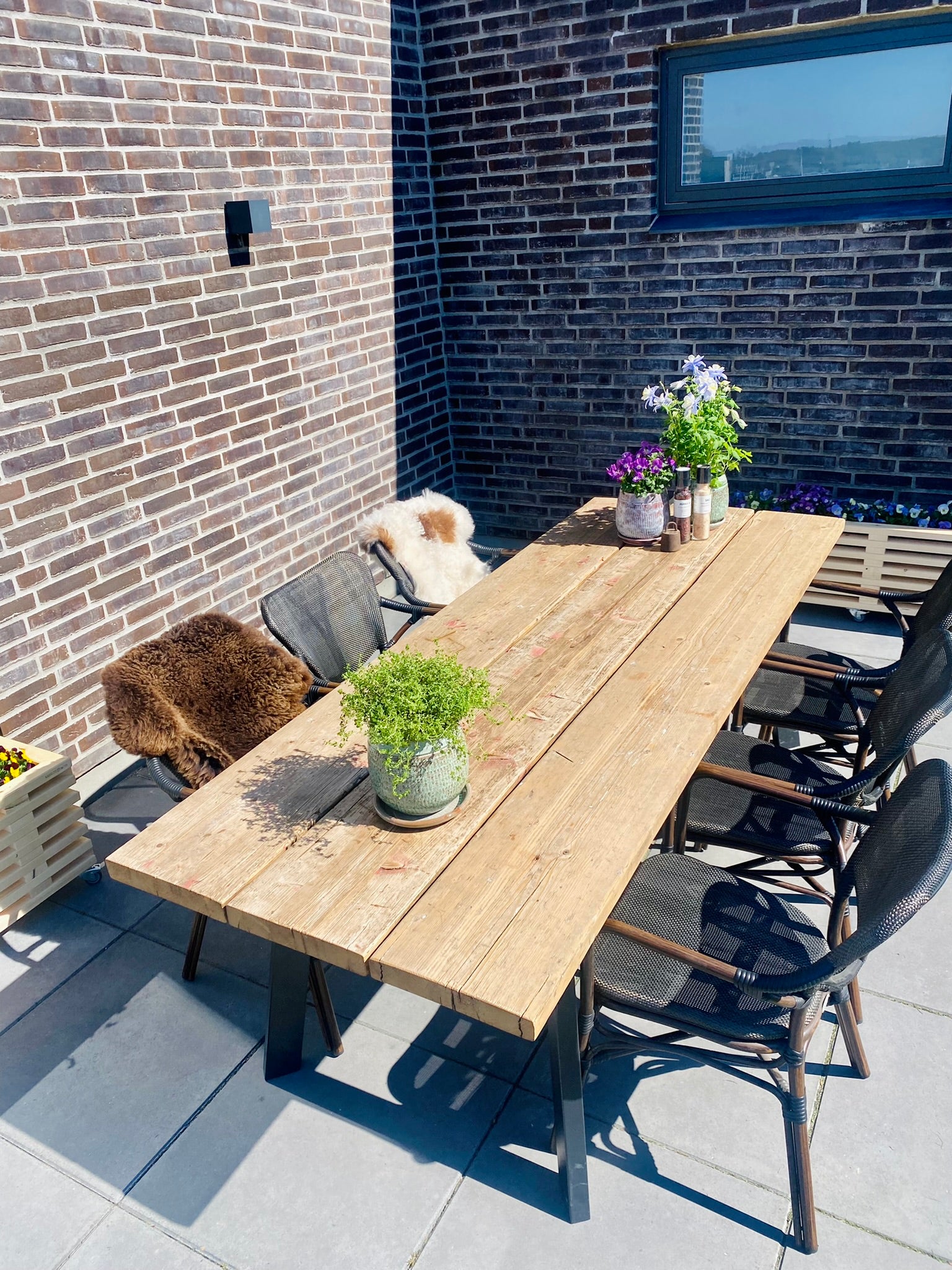Om produktet Vores havebord af genbrugsplanker giver et rå og industrielt look der passer godt ind i haven eller på terrassen. Genbrugsplanker er noget helt andet end så mange andre bordplader og man får et helt unikt og enestående produkt. Der findes nem