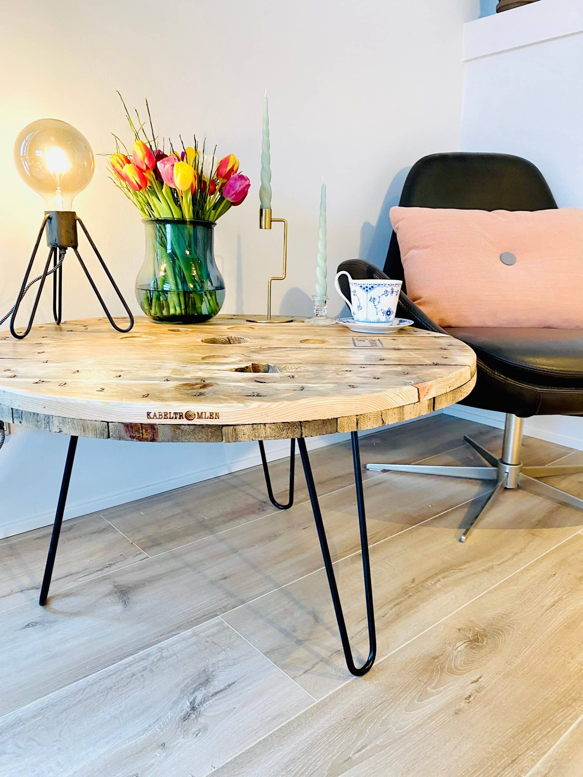 Om produktet Vores sofaborde af kabeltromleplader giver et rå og industrielt look der passer godt ind i den nordiske stil og indretning. Den runde form gør bordet perfekt til hjørnesofa eller U sofaer. En kabeltromleplade er noget helt andet end så mange