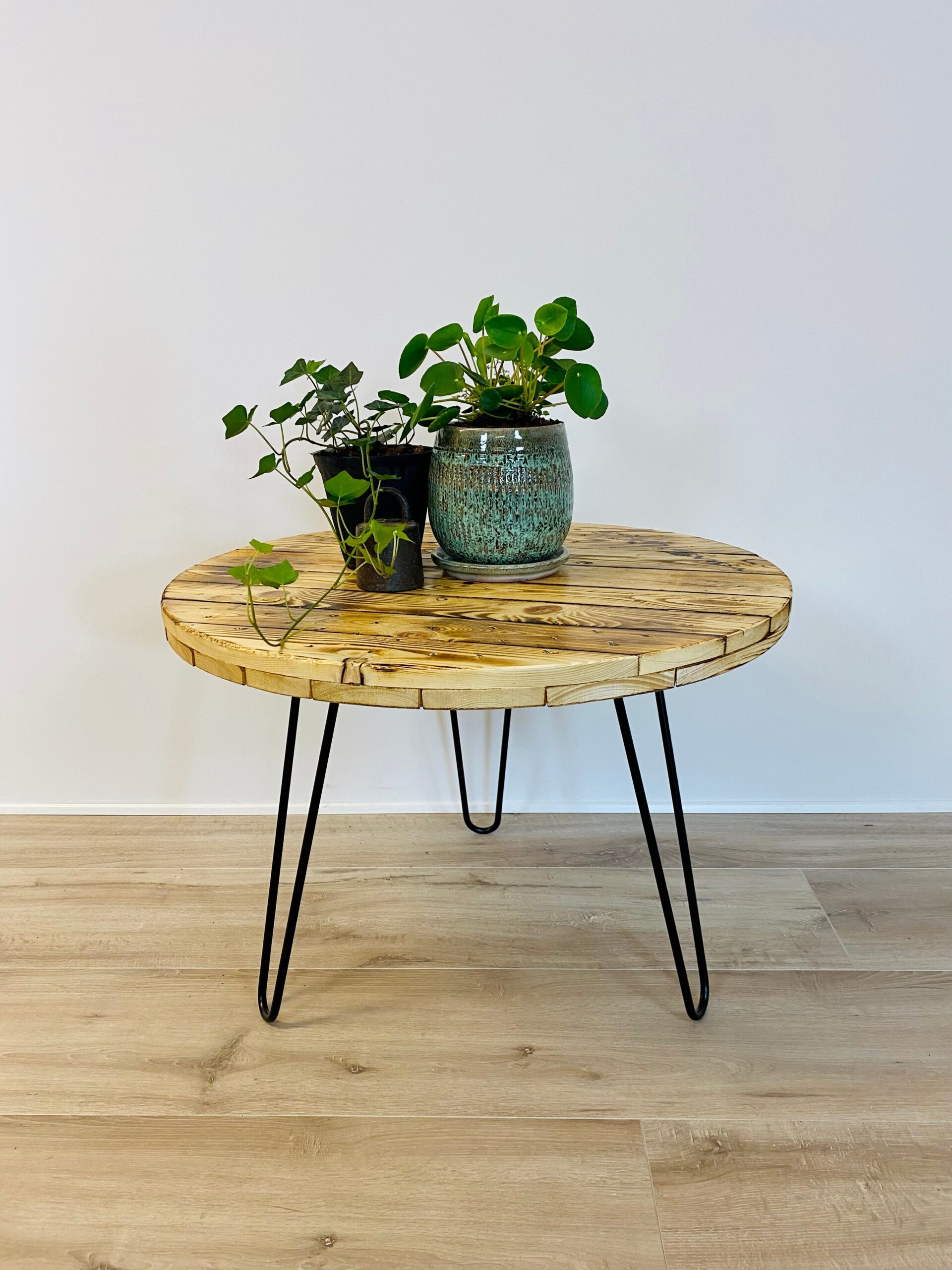 Om produktet Vores runde sofaborde af kabeltromleplader giver et rå og industrielt look der passer godt ind i den nordiske stil og indretning. Den runde form gør bordet perfekt til hjørnesofa eller U sofaer. En kabeltromleplade er noget helt andet end så